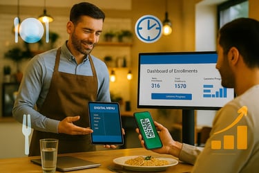 Menús escaneables, pedidos automatizados y pagos sin contacto. Con plataformas digitales, tu negocio de alimentos se vuelve más rápido, más eficiente y más rentable. Menos espera, más sabor. Más tecnología, mejor atención. Activa tu restaurante inteligente hoy